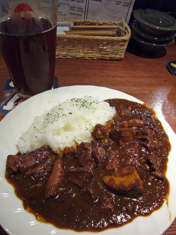 月に1回の限定メニュー、ビールだけで煮込んだカレーも美味しい。