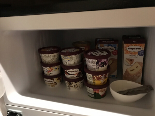 食後のセルフ喫茶コーナーも、限定品やプレミアムシリーズのハーゲンダッツが10種類以上揃えてあり、入手するだけでも手間が掛かる。