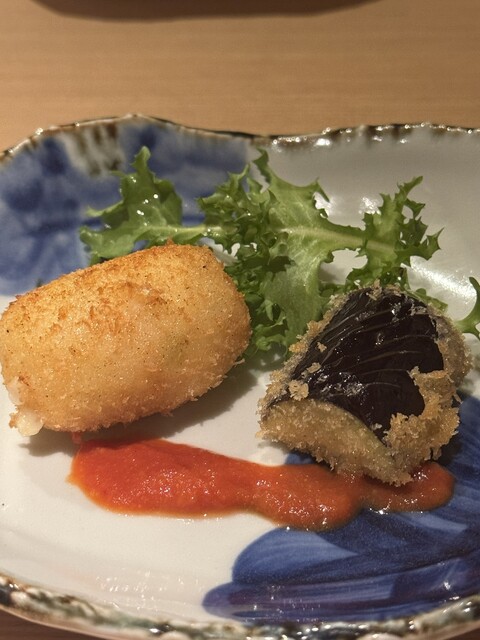 瑞々しい脚肉を薄衣で纏わせたズワイガニ天ぷら。サクッ、ふわっ、じゅわっ——三拍子の食感に藻塩をちょんとのせれば、甘味がさらに際立ちます。添えられた蓮根の穴から覗く湯気もまた愛らしい。