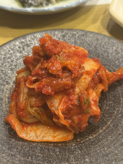 追加の厚切りタンは圧巻。分厚いのに繊維が柔らかく、表面をサッと炙って中はレアめに仕上げると、旨みの脂がジュワッと広がって幸福度MAX。厚切りハラミも香りが良く、塩でシンプルに食べると肉力が際立つ。合間のキムチは辛味がキリッと立っていいリセット。チャンジャや韓国のりなど小皿も抜かりなく、素材の良さと下味のセンスが光ります。〆は冷麺。澄んだスープに氷がキンキン、あっさりなのにコクがあって焼肉後の口内をすっと整えてくれる。