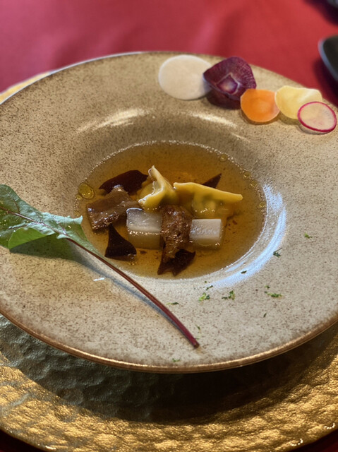 前々から気になっていた憧れのお店です。パートナーの誕生日で3週間ほど前に予約し訪問しました。席はカウンターだけで、全部で8席ほどありましたが私たち2人以外は全員海外の方でした(おそらくマンダリンに宿泊...