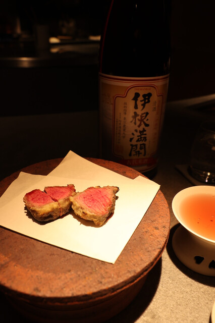 藁焼きなど様々な調理法を駆使して繰り出される皿とお燗とのマリアージュは完璧です。8人掛けのモダンなカウンターからは調理工程を見ることもでき、五感を刺激されました。お燗はちろりの材質や提供する温度まで計算し尽くされています。シェフのお燗や料理に対する考えが深く、底が見えない。