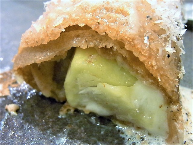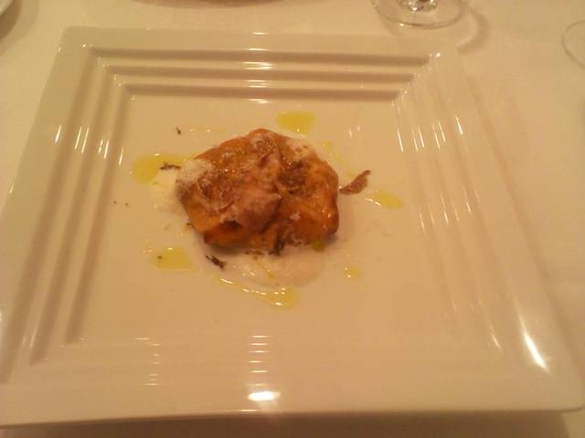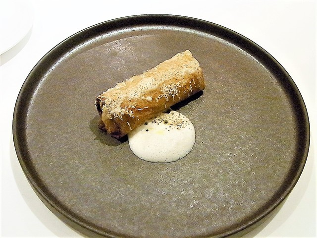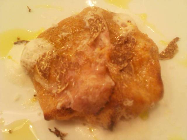 白トリュフとチーズと生ハム?と何かを何かで包んで焼いた、温かい前菜♪