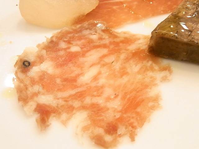 ◆前菜 〆鯖の炙りと蕪 フォアグラのムース 和牛ホホ肉のテリーヌ