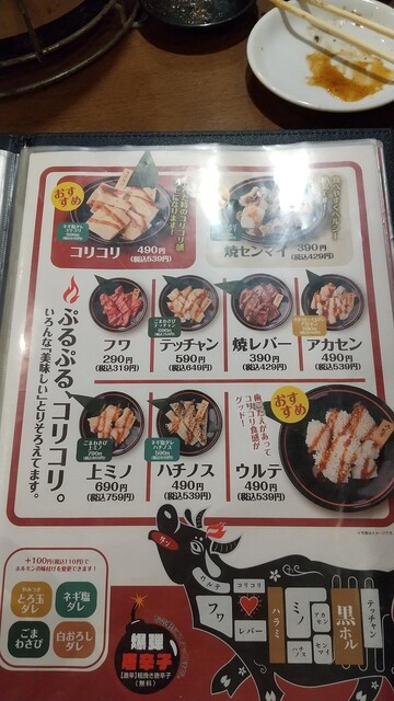 なんせおすすめは黒ホル(490円)です。こんなに油が乗ってプリプリのホルモンがこの価格はありえません。あとガツミノ(390円)、アカセン(490円)も程よい油とコリコリ感が病みつきになります。