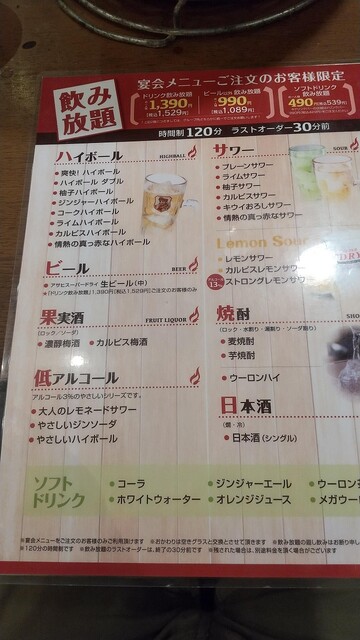 昼から飲める店は立ち飲み屋が沢山ありますが、喫煙可能が大多数なので避け、情熱ホルモンを選択しました。サービスタイムで平日17時までは生ビール290円(価格は全て税抜き)、ハイボール190円です。アプリを登録すると、当日からドリンク1杯無料になります。