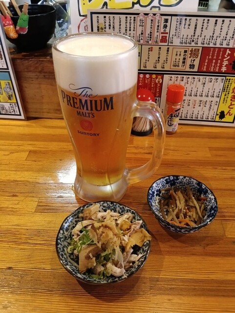 焼きとんという形態の店が、関西では少なく、「レバテキ(190円)」や「しろ(130円)」など、酒に会うメニューが満載です。「レバテキ」にかかっているネギ塩だれを残しておいて、「ねっく(150円」や、「かしら(150円)」につけて食べてもおいしいです。