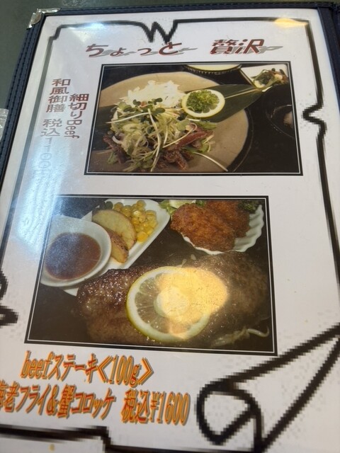 ハンバーグやステーキが美味しそうなメニューをじっくり眺めてみたけど、どれも格安で驚く。