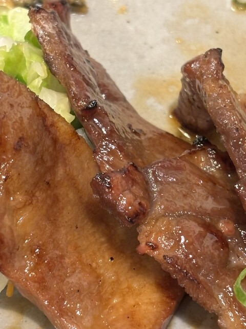 看板メニューの「牛タン焼き」が「塩・味噌・醤油味」と魅力的なラインナップだったので、まずは塩から、そして味噌、醤油と頼むことに。。。どれもボリュームもあるし、美味しい!