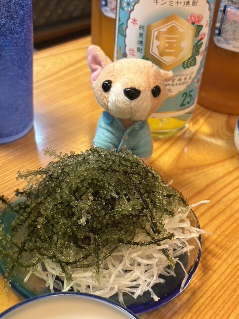 食レポは、最初の「海ぶどう」がプチプチと口の中で弾けて、甘酸っぱいソースで頂くと爽やかな沖縄の風を感じたり、定番の「ゴーヤチャンプル」もゴーヤの苦みも無く、炒り卵も程よい柔らかさで、食べ応えありました。