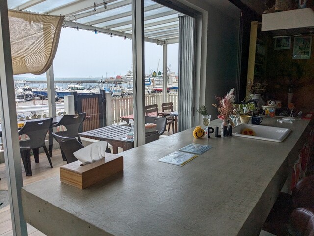 ダイビングの帰りにたまたま発見したテラス付きの海沿いのお店。看板も大きく出ていないカフェ風のお店。