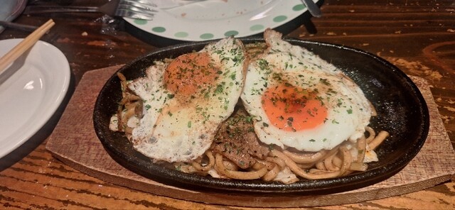 まず料理のクオリティが本当に高い。カジュアルな雰囲気のお店ながら、一品一品が想像以上に丁寧で、どのメニューもお酒が進む絶妙な味付けです。特にお気に入りは、目玉焼きをのせた焼きそば。香ばしいソースの香りと半熟の黄身のコクが合わさり、シンプルなのにクセになる美味しさです。深夜でも軽く食べられるのに、しっかり満足感がある絶妙な一皿。