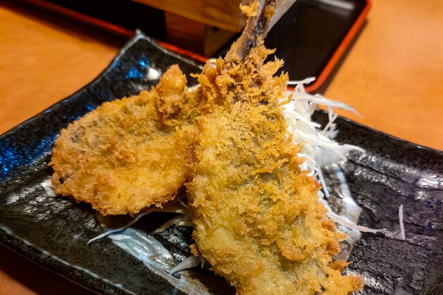 アジフライは、衣がサクサクで身はふっくら。揚げたてでアジの旨みがしっかり閉じ込められており、絶品でした。