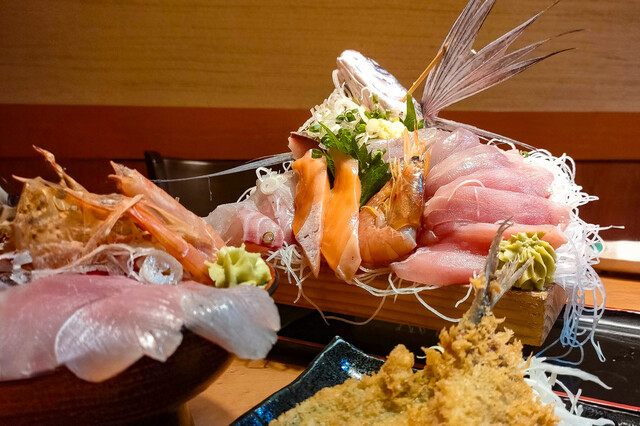 三代目刺身番長は、写真のとおり驚くほどのボリュームです。様々な種類の鮮魚が惜しみなく盛り付けられており、中でもマグロやカンパチは新鮮でとろけるような食感。一切れが分厚く、食べ応えも抜群でした。