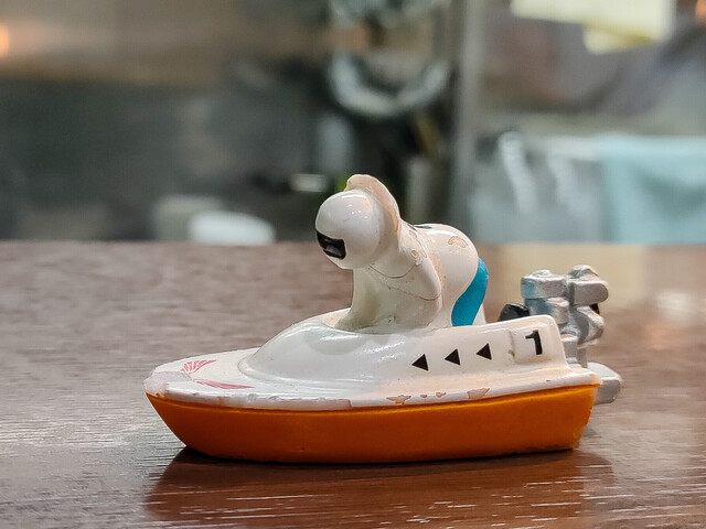 カウンター8席のコンパクトな店内。 店主さんの趣味でしょうか、カウンターの競艇ボート模型が並ぶ独特の雰囲気も楽しいです。