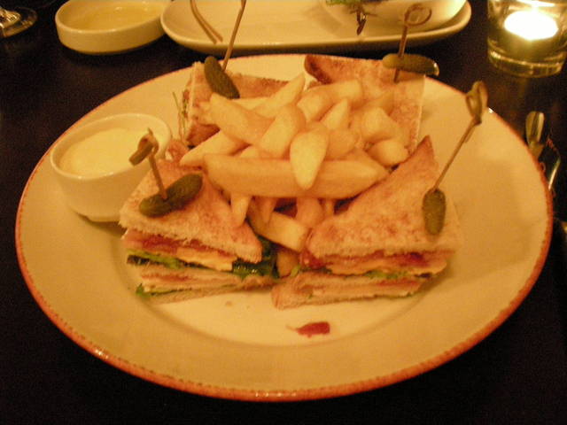 ダンナさんはステーキ、ワタシはクラブハウスサンドにしました。