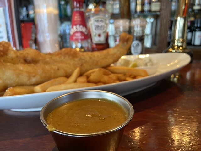 ワインビネガーとタルタルで食べるのも美味いんどけど、ロンドンでカレーソースに魅了され、こちらにもあったので追加でオーダー。