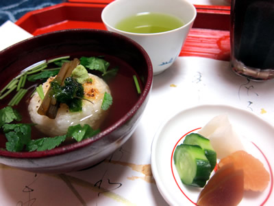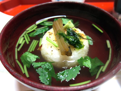 最後、飯物は何にする?と聞かれたので、おにぎりのお茶漬け。