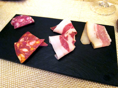 料理ができるまで、生ハム各種を出してもらいました。
