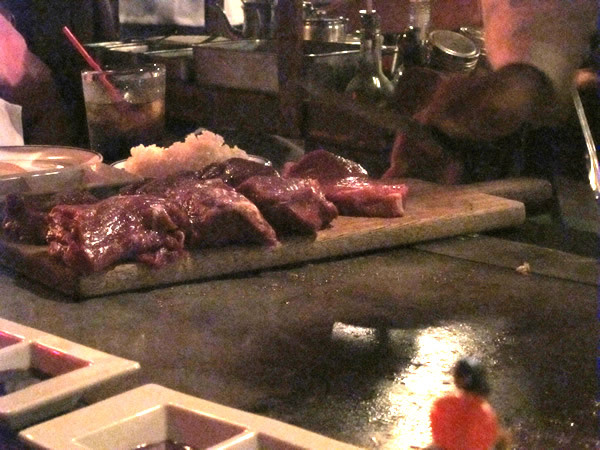 お肉の質感とか、目の前でジュージュー焼かれる匂いと音を堪能しましょう。