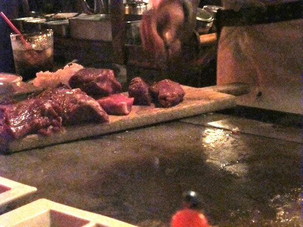 「鉄板焼き」という高級さの醍醐味は、調理前と途中の、この瞬間のためにあるといっても過言ではない。