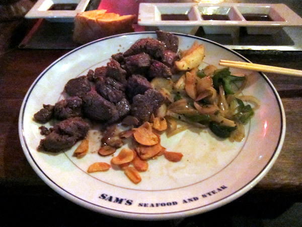 もうお肉を食べるのに顎が疲れてきていて、消耗しきっています。