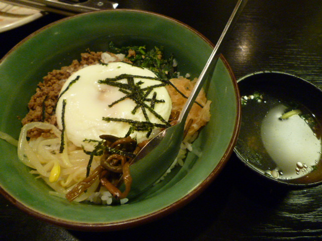 ご飯の上にはナムルもいっぱいのってておいしかったです。