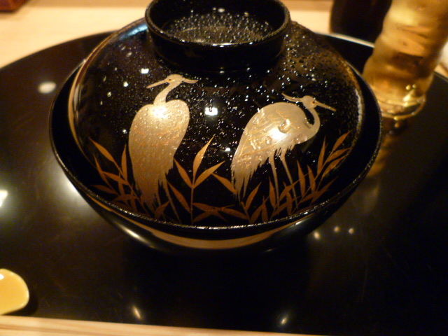 しらさぎのお椀、濡れているのは誰も手をつけていない、ということがこれでわかるため、だそうです。