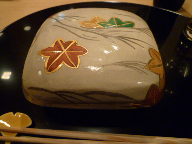 大根田楽、フォアグラゼリー、栗の珈琲煮、出汁巻き玉子、みょうが、イカの黄金焼、小さな鯖寿司、そして、小さな小鉢の中はあん肝〜〜お。みんな美味しいけど特にあん肝が美味♪