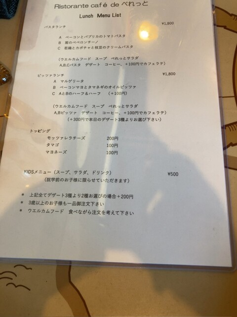 ランチはパスタランチとピッツァランチがあり、せっかくなので、パスタとピッツァをオーダーした2人でシェアすることにしました。
