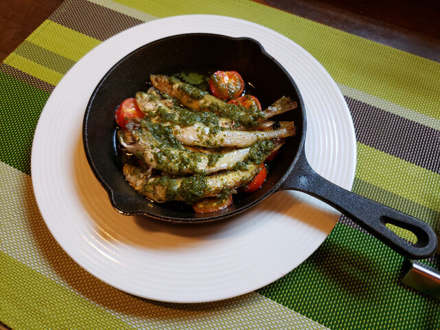北海道産ワカサギのコンフィ アンチョビソース