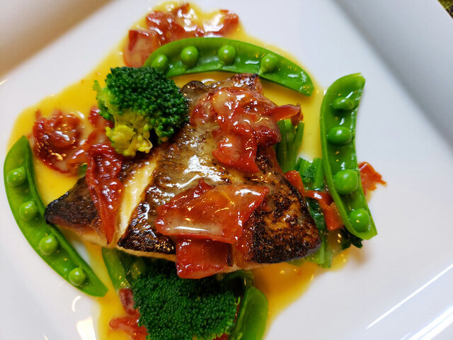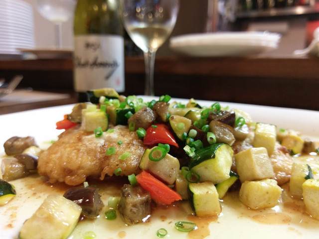 ハモのムニエル 赤ワインビネガーソース