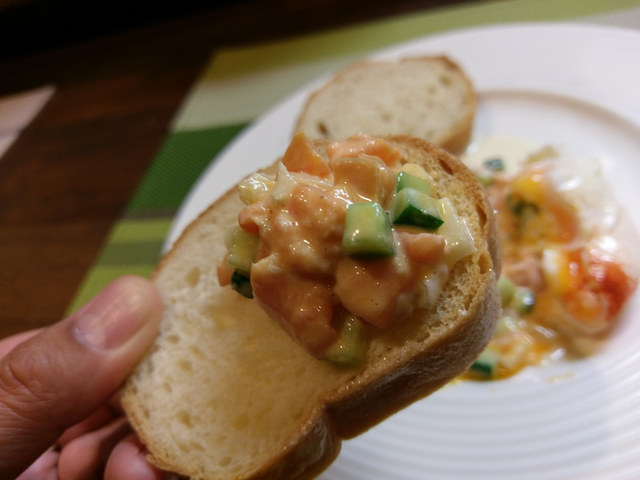 混ぜて…バゲットに乗せていただきますヾ(o´∀`o)ノワァーィ♪