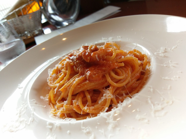 濃厚なトマトソースの麺との絡みも抜群で、あっという間にこちらも完食(;´▽`A``