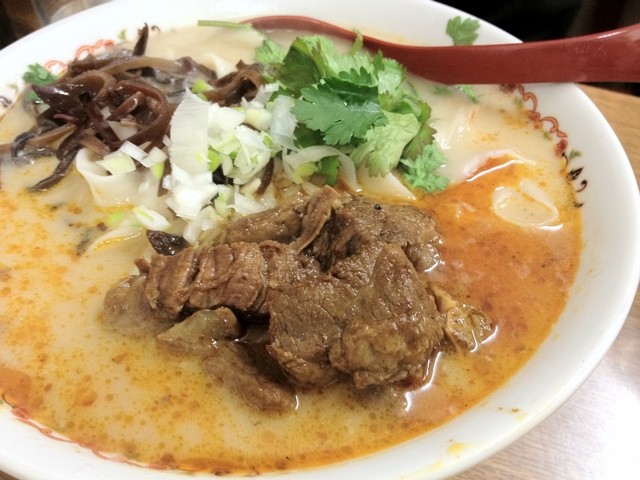 担々麺以外にも、牛肉刀削麺の牛筋はトロトロで美味しいし、辛さ控えめで誰でも食べられる。