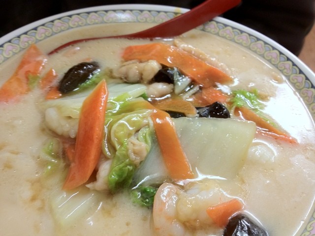まるで長崎ちゃんぽんのような、優しい味わいのスープを楽しめます。