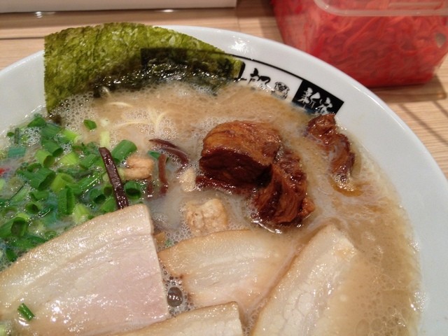 背脂の揚げ物や海苔など、これが博多ラーメン?と思うところもありますが、普通に美味しい博多ラーメン、ちょびっと派生系って感じですね。