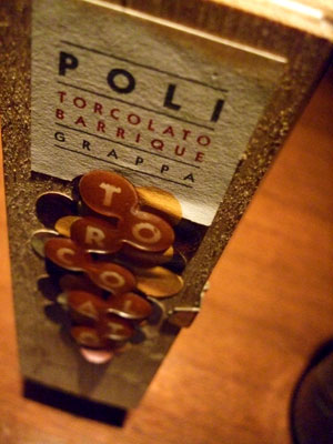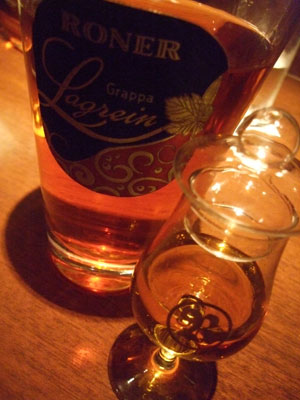 バーカウンターもあり、グラッパは東京一ではないかと推定。ミケーレ・キャルロのバローロ、メンテのアルザス・ゲヴェルツ、ウーゴ・キアラのバローロ、ロナーのラグレイン、最後にアスパラガス風味のグラッパ。合間にはSIBONAのグラッパ・チョコレートまでと至れり尽くせり。阿房のように喜んで、貪欲にいかせていただきました。再訪しますよ!2010.7訪問。