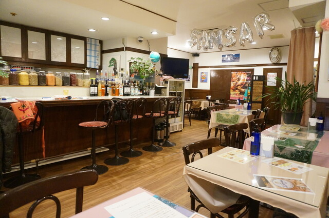 店内は意外に奥行きがあってカウンター席も少々。照明は薄暗く内装もエスニックな感じです。