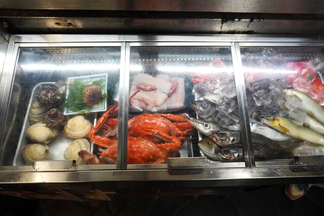 今回酒はハイボール(580円)→賀茂鶴樽酒二合大徳利(900円)と堪能。料理は直接見て小皿5品をチョイス。