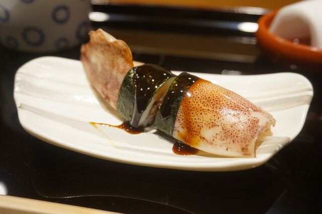 常連さんが頼んでいたのを真似て注文。煮イカもヒモも握りや巻物で食べたことありますが単品はお初です。