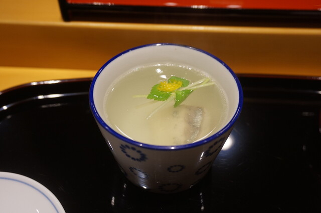 お通しもそうですがこのお吸い物も出現はアトランダム。この時は魚のアラ(鯛かシマアジ?)を使った潮汁でした。