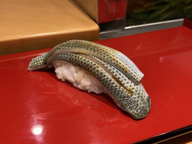小肌は二枚重ねで登場。季節により魚体のサイズが変わりますが、私はこれくらいのサイズ感が好み。