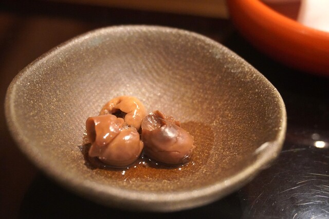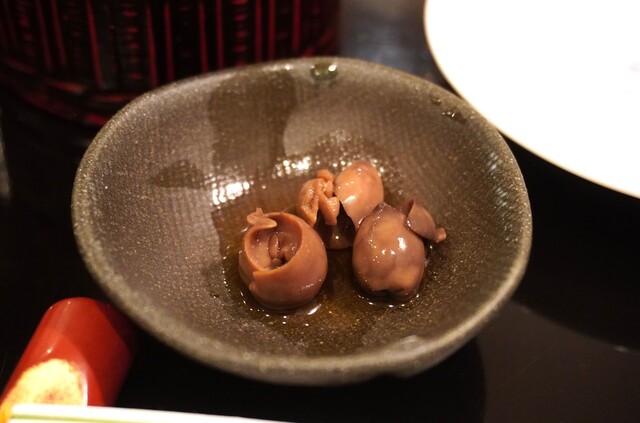 小さな肝煮が3つ。今までの経験上これは多分穴子の肝だと思います。少し甘口で小粒でも濃い旨味。