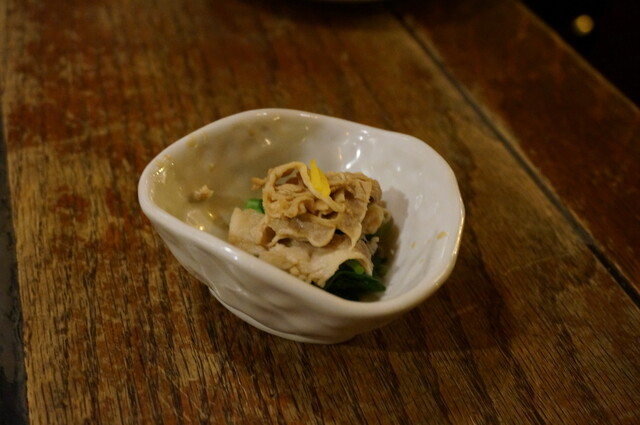 お通しにポン酢味の蒸し豚(ナンコツ)?出てきましたが、コレが既に旨くていきなり呑みがスパークしました。