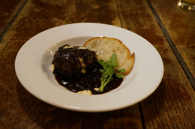 粗挽きでしっかりした歯触りの牛肉にプチプチしたナンコツ。そこに超濃厚なデミグラスソース^m^