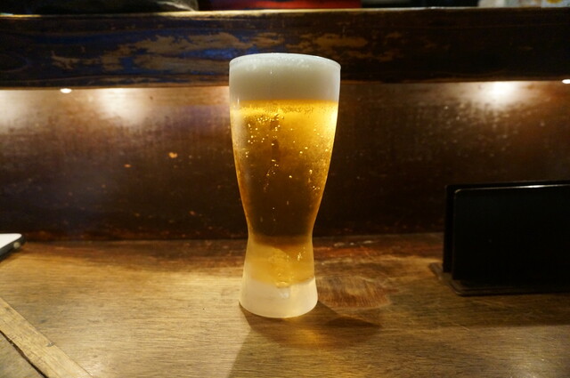 酒は最初ビールからスタート。すぐに芋焼酎に切り替えます。酒は値段が書いてないので店員に都度確認。