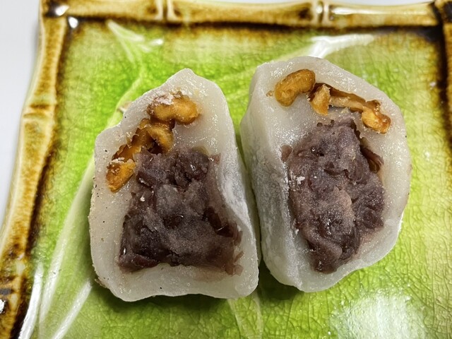 くるみ餅は、粒あんと硬いくるみが