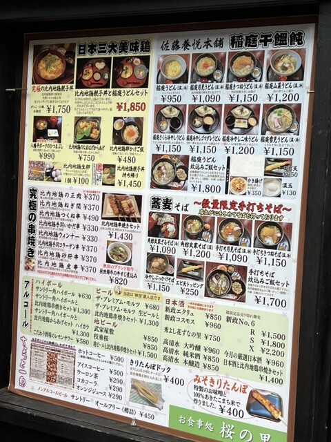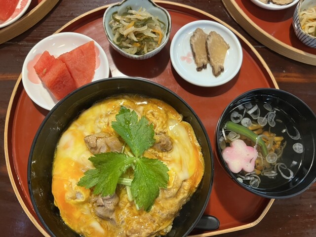 駐車場のおばちゃんに1番美味しい親子丼を教えて貰い、桜の里さんに来ました。お客さんの9割方親子丼を頼みますが比内地鶏の親子丼と稲庭うどんのセットか究極の比内地鶏親子丼で迷います。結局究極にしで比内地鶏の卵3個使った半熟とろとろにした親子丼にしました。そして大正解でした。鶏肉は弾力あるし、卵とごはんは超とろとろで美味でした。次回は桜の季節に来たいと思います。ごちそうさまでした。