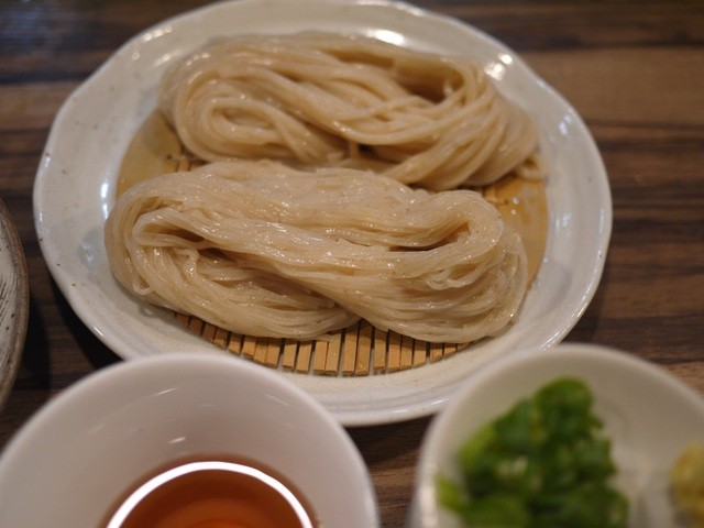 つけ麺にしては細めの麺、ものすごく美しい盛り付けで登場。